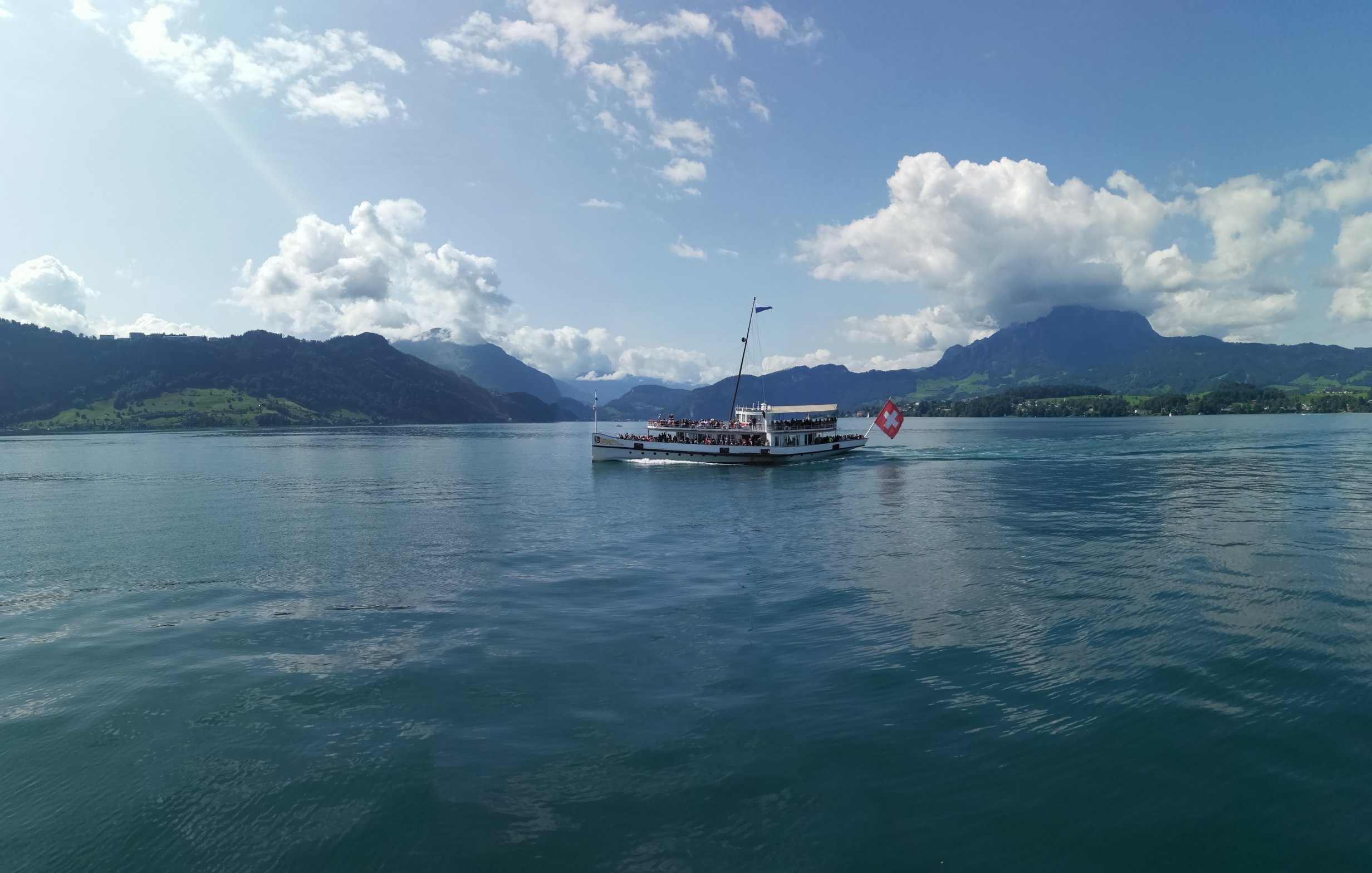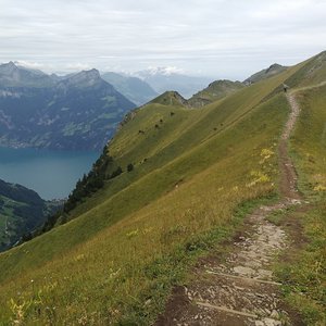 The next day we all went to Zurich to meet another friend of ours, Anet and her husband Iker. We enjoyed the weather at Frau Gerolds Garten–something like a beer garden, but with many options of cuisine and art. As Anet had also studied in Denmark with us, it was really nice to catch up with her and share our old stories. The following morning we went back to Lucerne, but this time to take a brunch cruise on Lake Lucerne–this was outstanding! The views of the mountains from the cruise were phenomenal, some even still contained snow caps. The food was also delicious with an assortment of fresh bread, cheese, and meats. Jan used this opportunity to sell us on the magical wonderland of Switzerland and why it’s a great place to live–Megan is fully convinced, but Markus is still skeptical. In the afternoon Jan drove us around to some smaller villages on Lake Lucerne, including the one he works at Vitznau. The next morning we went with Jan to his work and from there took two buses to take us to a mountain to hike. The efficiency of the buses was amazing, on time to the dot, but the price was a bit rough to swallow at 22 CHF for a day ticket. We hiked the Stoos Ridge. While it was a bit difficult and pricey to access, it was well worth it. The ridge takes in 360 degree views that are outstanding. While in the US it takes a lot of effort to get to these types of views, the infrastructure here allows for those less mobile to reach these beautiful peaks, including a pair of nuns that passed us on the trail.